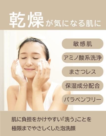 肌に負担をかけやすい「洗う」ことを極限まで優しくしたのが「弱酸性・泡ウォッシュ」です。アミノ酸由来の優しい洗浄成分に10種のアミノ酸を補うことで、メイク残りや余分な皮脂汚れをさっぱり落としつつ、洗いあがりのしっとり感を実現しました。